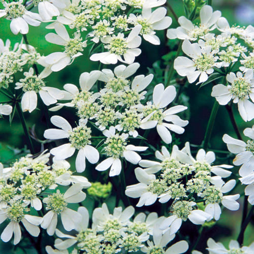 茎の頂上部に小さな白い花をまとまって咲かせる。